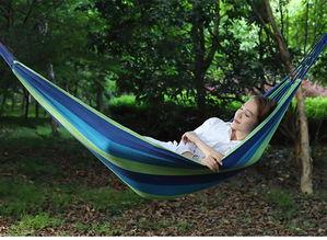 除了材质,吊床的尺寸也很重要。一般来说,成人吊床的尺寸在1.8米到2.2米之间,宽度在60厘米到80厘米之间。选择合适的尺寸,才能让你在吊床上躺得更加舒适。
